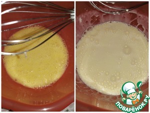 Оливковое масло взбить с яйцами до однородной массы, добавить сметану, взбить.