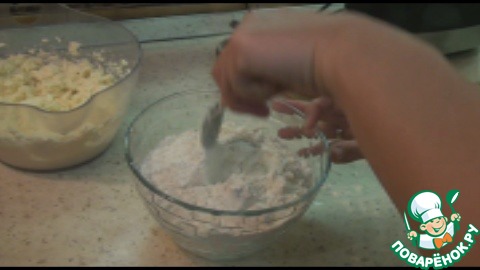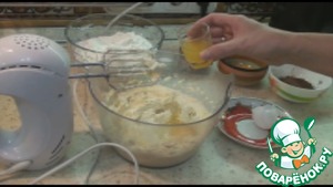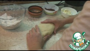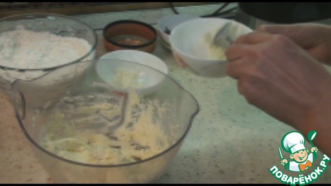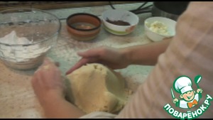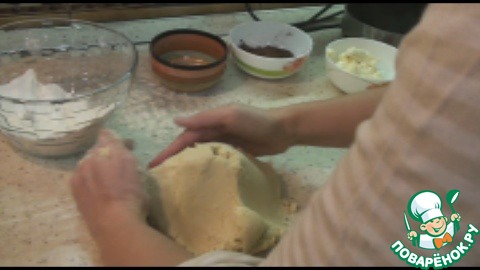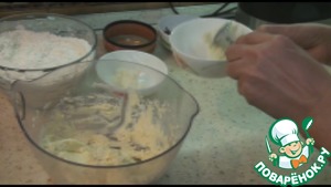 В ту часть масляной смеси, которой наибольше постепенно добавляем муку и замешиваем тесто. Оно должно быть мягким и не липнуть к рукам.