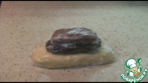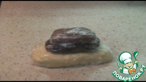 Из теста делаем тоже продолговатую полоску и откладываем в сторону.