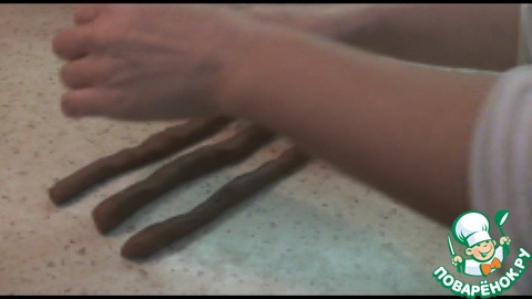 Делаем из теста продолговатую полоску и откладываем пока в сторону.