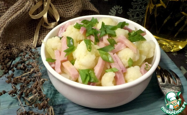 Рецепт «Теплый салат с цветной капустой и ветчиной»: