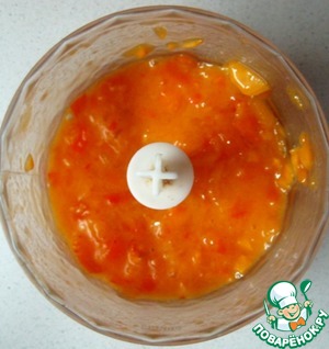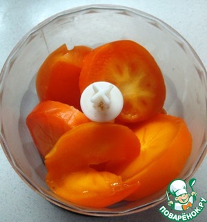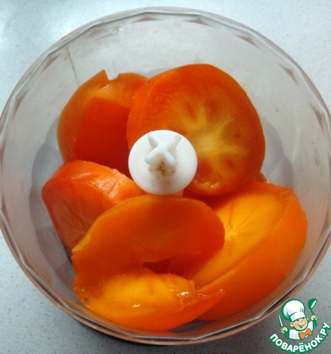 Нарезать хурму кусочками и сложить в чашу блендера.
