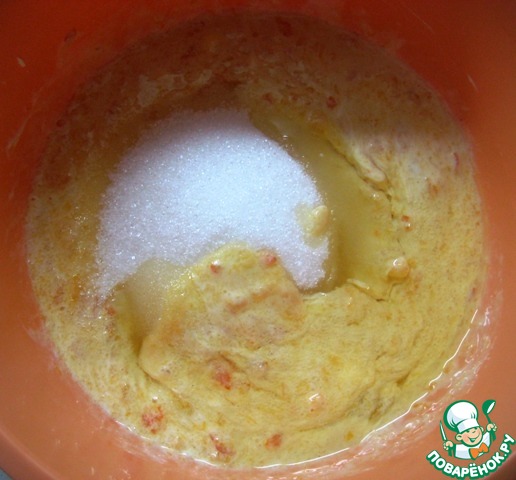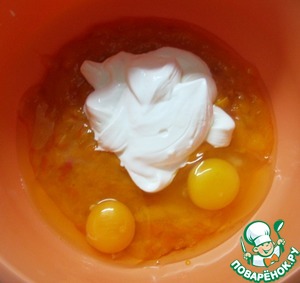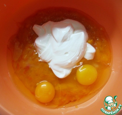 В миске соединить пюре из хурмы, яйца и сметану. Перемешать.