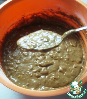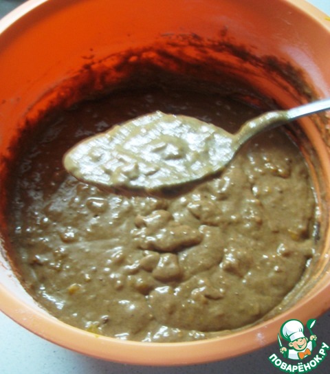Перемешать до однородного состояния. Тесто получается густое, с ложки не стекает.