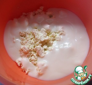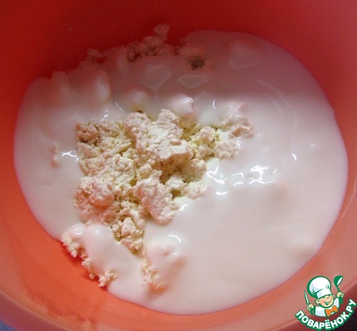 Для теста: в миске соединить творог и кефир. Перемешать.
