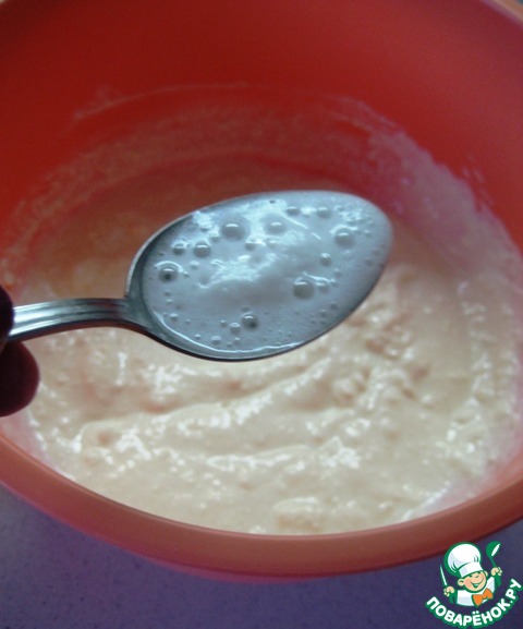Добавить соду, гашеную уксусом. Перемешать. Дать постоять 10-15 минут.