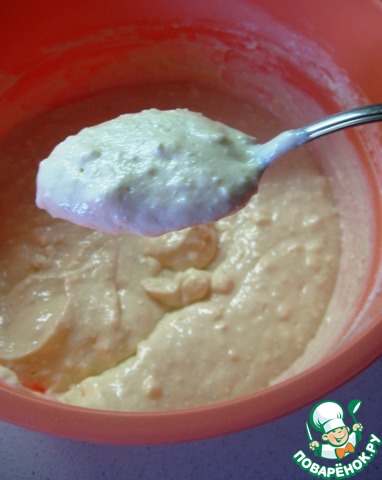 Сверху - снова тесто (примерно 0.5 ст. л.), чтобы покрыть начинку.
