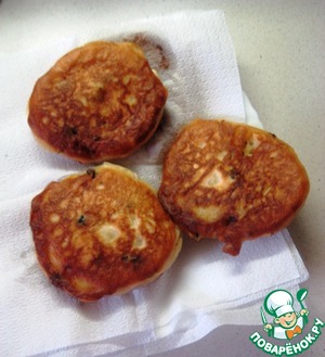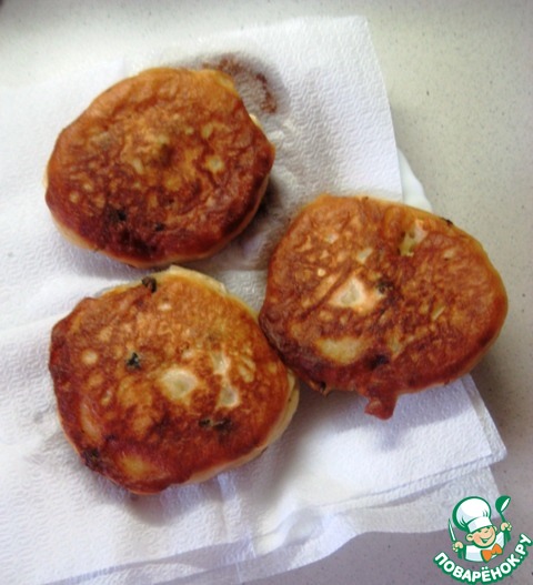 Готовые оладьи выложить на салфетку, чтобы убрать лишнее масло. У меня получилось 10 шт.