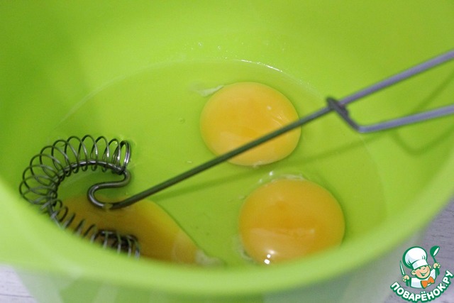 В большую миску выложить яйца.