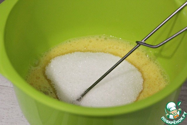 Добавить сахар, хорошо взбить венчиком.