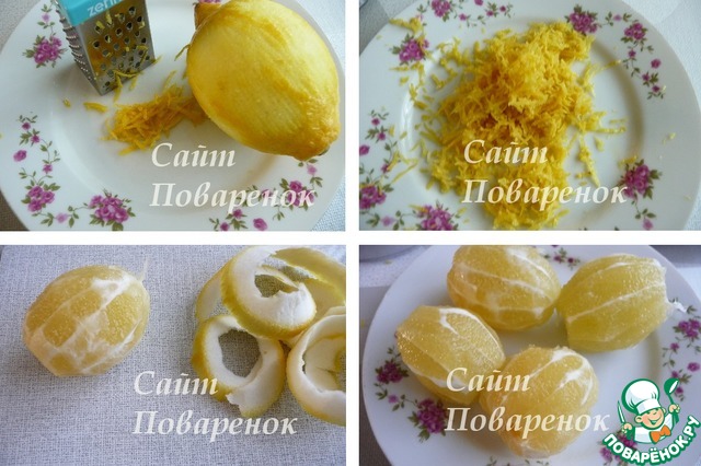 Лимоны помыть, обсушить бумажными салфетками. Снять цедру теркой. Острым ножом срезать белую мякоть.