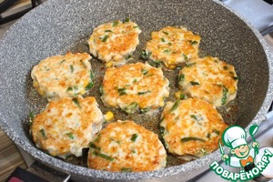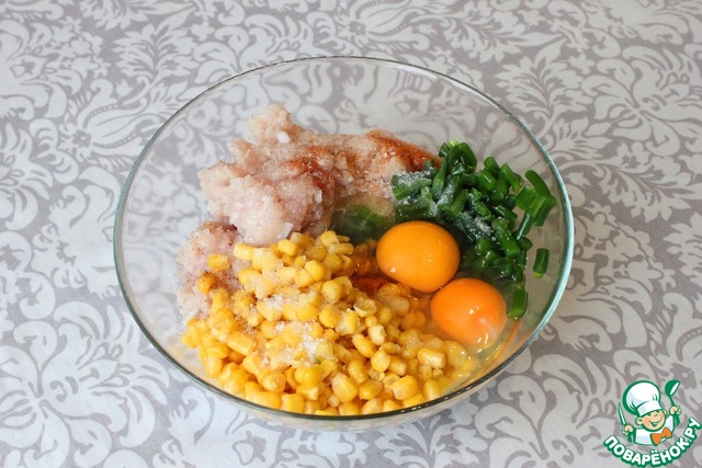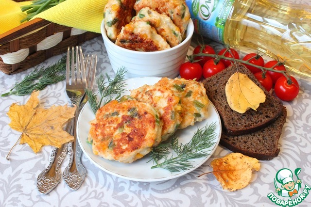 Куриные оладьи с чесночными стрелками и кукурузой готовы. Можно подавать их как в горячем, так и в холодном виде. Приятного аппетита!
