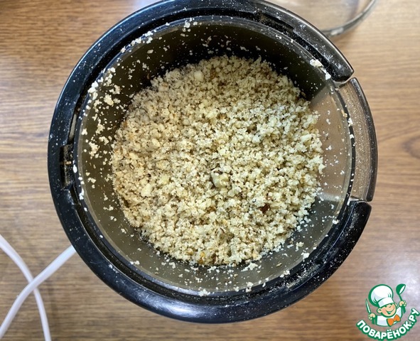 Перемолоть грецкие орехи в кофемолке/блендере до состояния мелкой крошки.