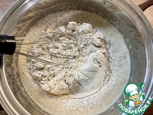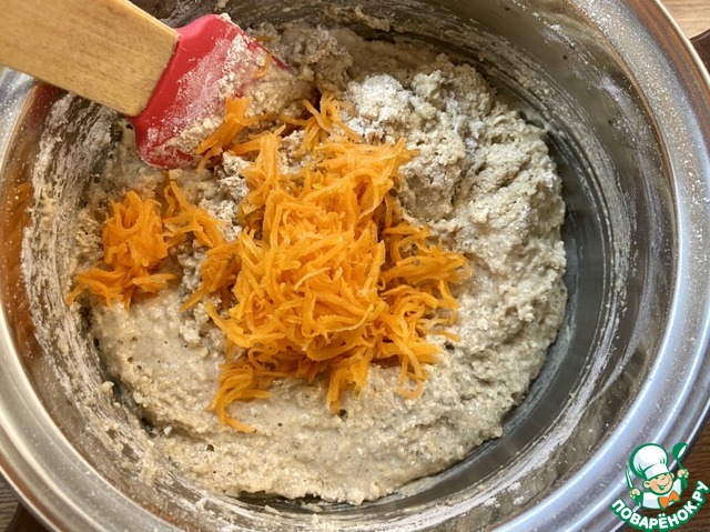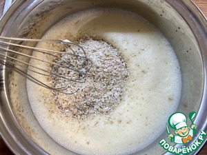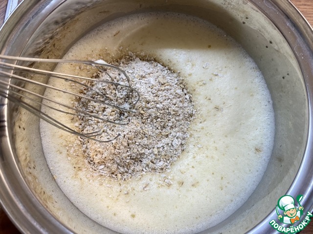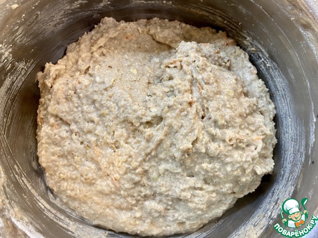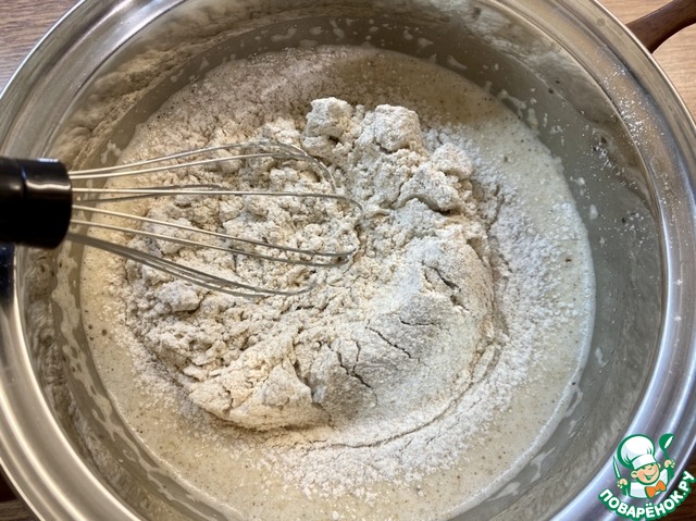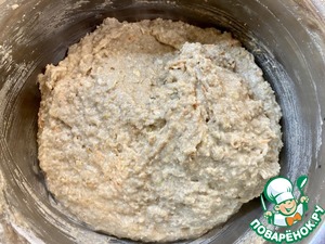 Добавлять частями просеянную цельнозерновую муку. Тесто не должно стать очень густым.