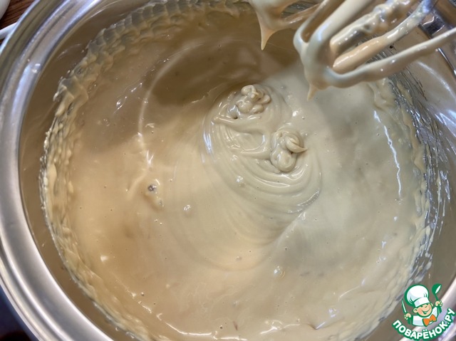 Добавить сметану и взбить до однородного состояния (как густая сметана). Крем не должен стать слишком жидким.