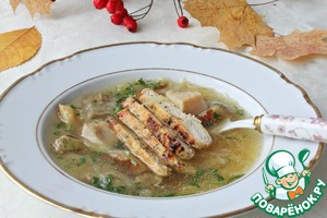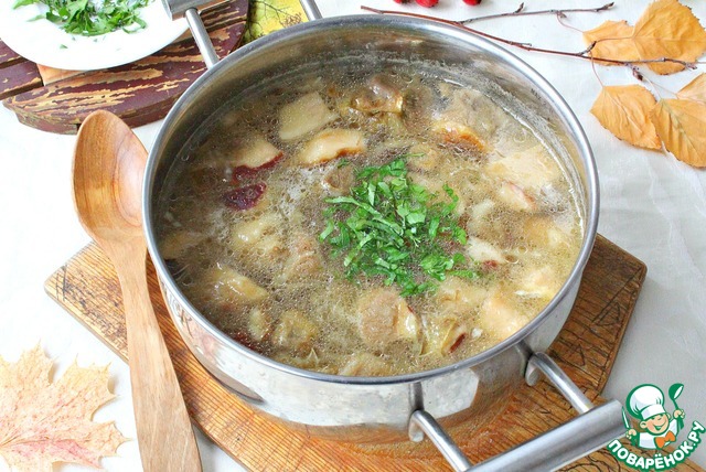 Очень по-осеннему и очень необычные щи - необычный состав, очень необычный вкус. Рецепт от шефа Евгения Козубова. Шефский рецепт всегда притягивает своей новизной. Долго заглядывалась я на них -уж очень странные сочетания ингредиентов. Любопытство взяло верх - приготовила. Наш обед получился с невероятным ароматом белых грибов! Пробуем?