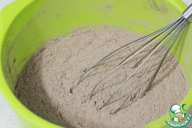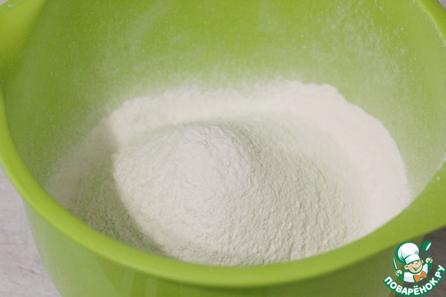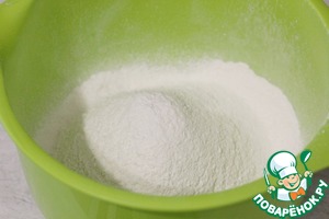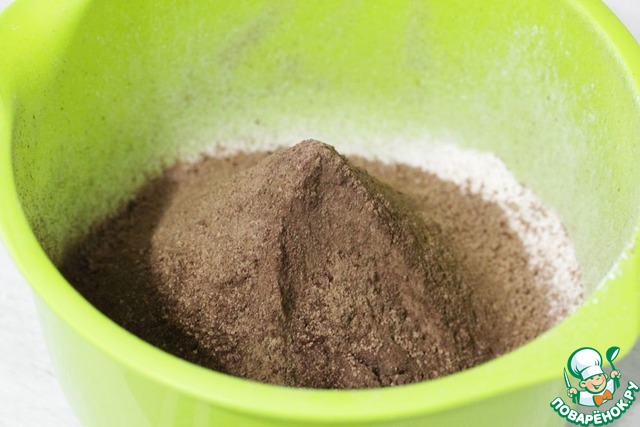 В большую миску просеять муку с содой и разрыхлителем.