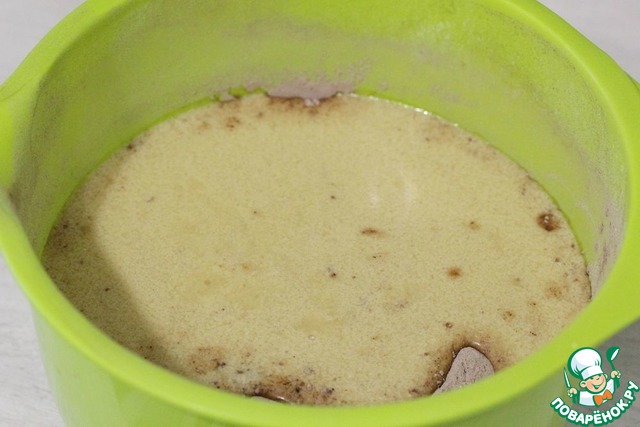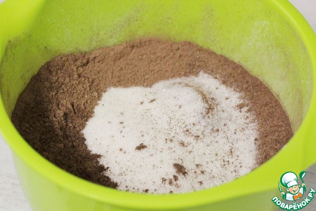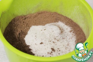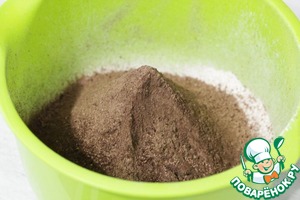 Туда же просеять какао-порошок.