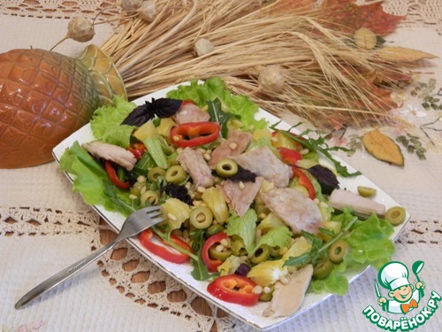 Никого не оставит равнодушным этот салат. Он порадует Вас и в будни, и в праздник. Салат обогатит витаминами, порадует вкусом и подарит массу новых неожиданных ощущений и удовольствия от еды. Скоро Рождественнский пост и если салат сделать без мяса, то он придется очень кстати на Новогодний стол, для тех кто постится.