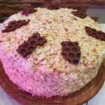10. Собрать торт, смазывая коржи между собой кремом. На верхний корж также нанести крем. Присыпать торт со всех сторон крошкой.