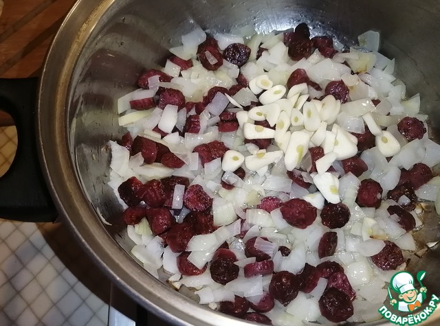 Ингредиенты для «Суп с тыквой, рисом и колбасками»: