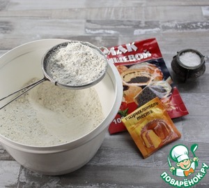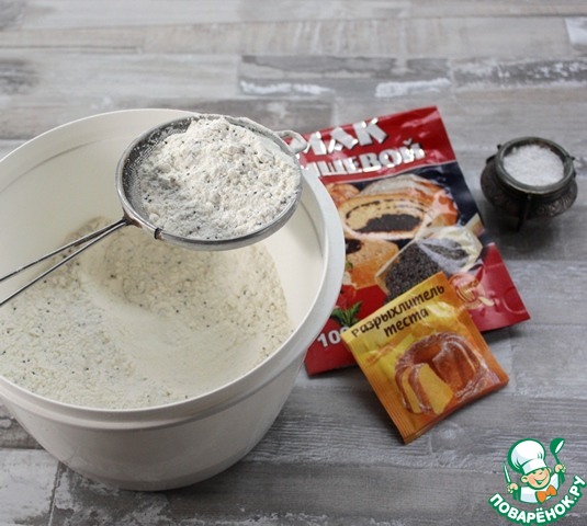 В чашке соединить просеянную муку с разрыхлителем, солью и маком, перемешать.