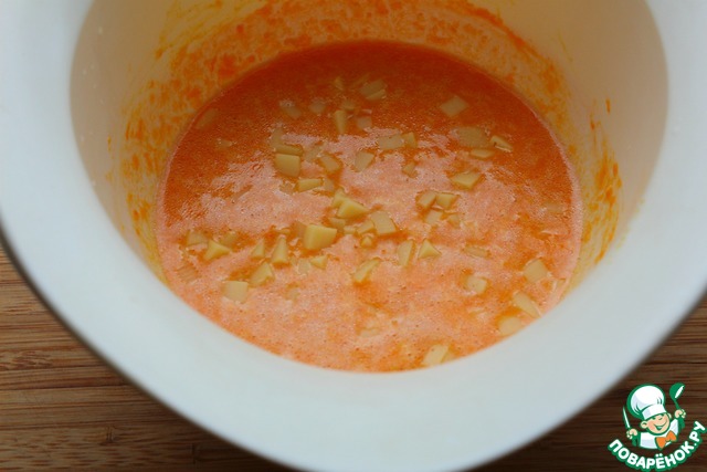 - Пюре овощное (тывенное.Если нет готового, то запечь тыкву и пробить,блендером.) — 200 г