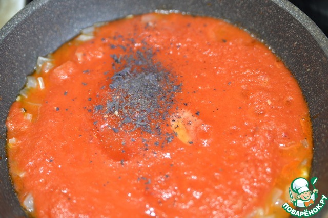 Перемешиваем, тушим соус 5 минут на среднем огне.