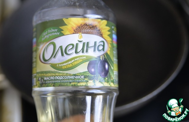 Наливаем на сковороду масло, у меня "Олейна", подсолнечное с добавлением оливкового.