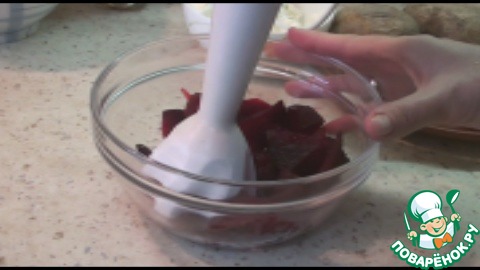 Свеклу и картофель я запекала в духовке, так они менее водянистые. Даём остыть, потом свеклу измельчаем блендером.