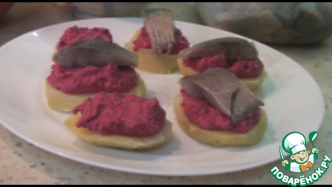 Выкладываем на тарелку, сверху накладываем свекольную намазку.
