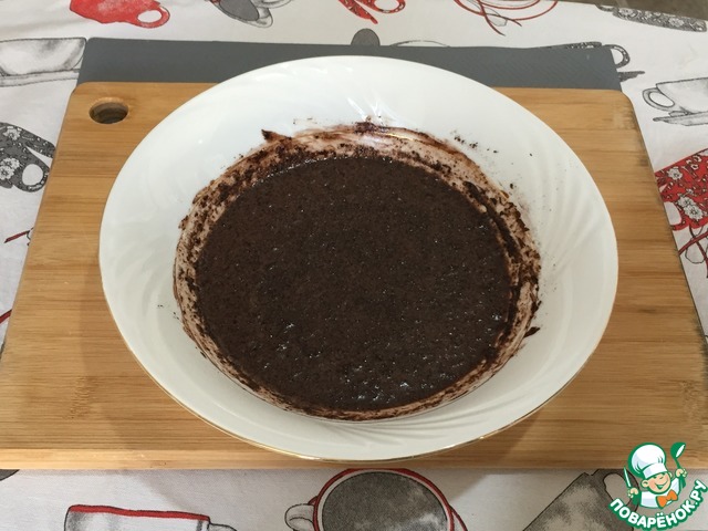В глубокую посуду вливаем растопленное сливочное масло. Добавляем молоко, сахар, какао. Перемешиваем до однородной массы. Далее добавляем яйцо. Снова перемешиваем.