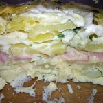 Раскладываем по тарелкам. Вот такая красивая тортилья в разрезе получается в СВЧ.