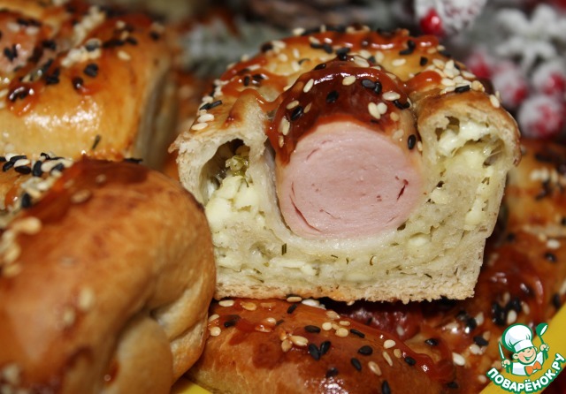 Хачапури -дог - отличный вариант ссобоек детям в школу, на пикники, да и взрослым прихватить с собой на работу, такой вариант вкусного перекуса будет очень неплохо. Хачапури -дог - это что-то среднее между хот - догом и хачапури. Во всем известных хот-догах, на мой взгляд, "скучные" обычные булочки. Я решила поэкспериментировать и объединить хачапури с их сочным и богатым внутренним сырным миром и хот-догом. Мне кажется, эксперимент удался - получилось сочно, сытно, ароматно и главное- вкусно.