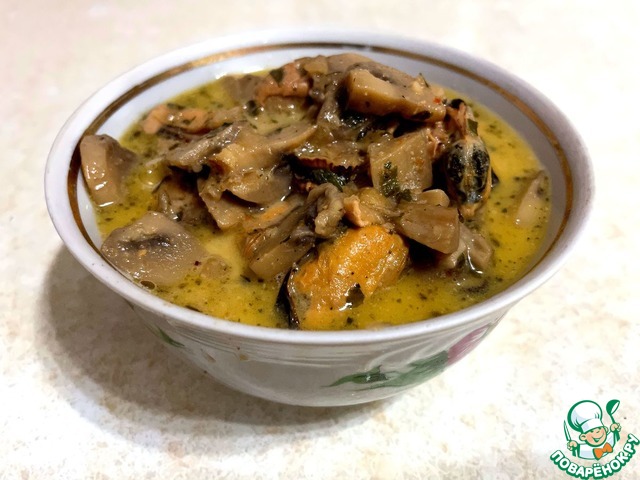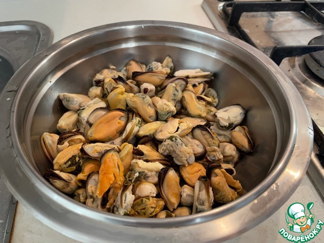 Рецепт «Мидии с шампиньонами, тушеные в сметане»: