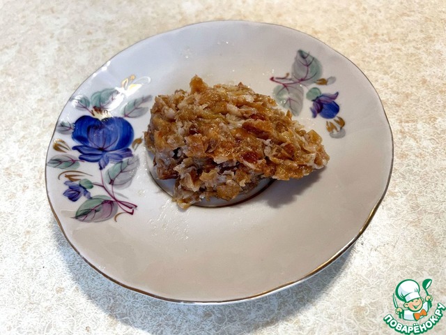 Нарезать лук и пожарить на сковороде. Я этот шаг пропустил, так как моя любимая заранее нажарила много лука, и он лежит в морозилке и ждет своего часа. Так что у меня уже есть готовый лук.