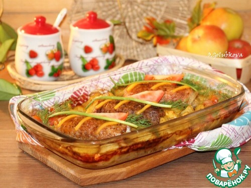 Сочные свиные отбивные с начинкой и ароматный картофель - это вкусный и сытный обед или ужин. Блюдо готовится в духовке.