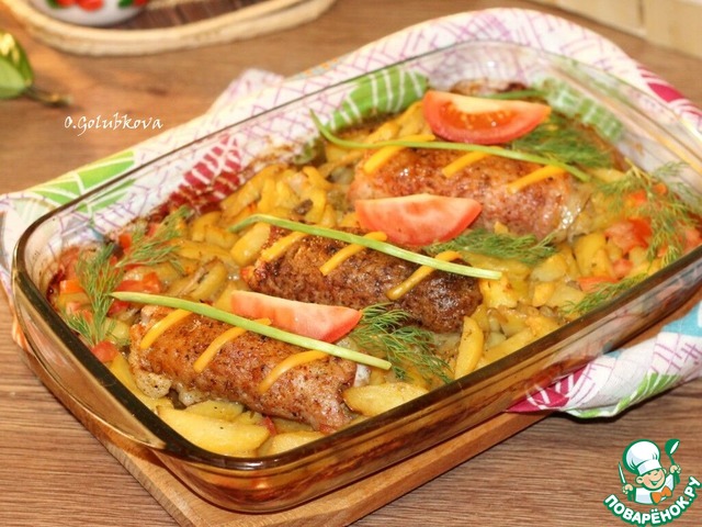 Рецепт «Мясные рулеты с начинкой и картофелем»:
