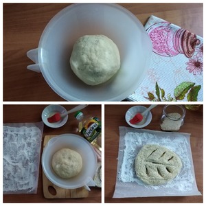Я замешивала руками до хорошей растяжки теста. Скатываем тесто в шар, помещаем в посуду какую-то, смазанную маслом. -