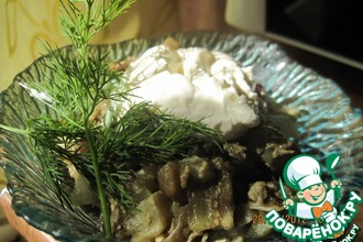 Выкладываем на блюдо баклажаны слоями, присыпая каждый слой солью и тертым сыром. Если используете фету, то аккуратно с солью!