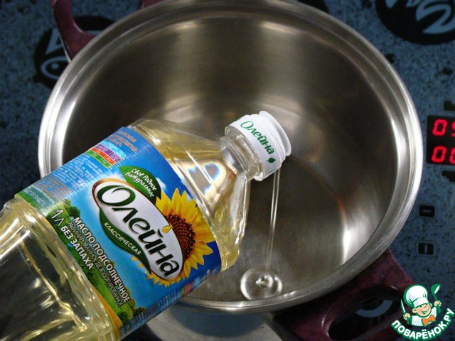 В небольшой сотейник налить растительное масло ТМ "Олейна" и хорошо прогреть.