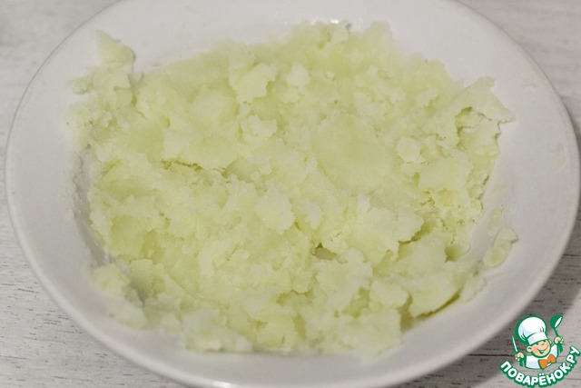 Целую картофелину вынуть из кастрюли и раздавить толкушкой.