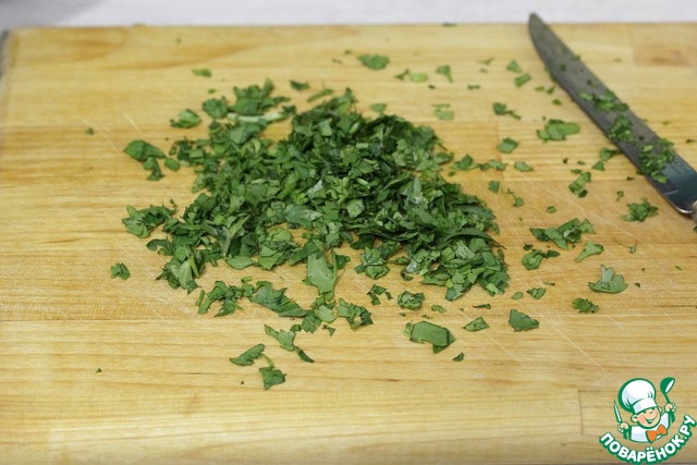 Мелко нарезать зелень.