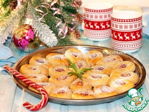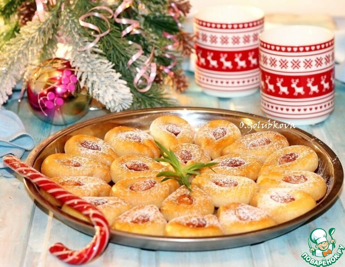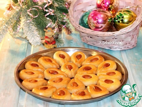 17. Печенье, я готовила и фотографировала 28 ноября. А 29 случайно увидела на 1 странице сайта похожее печенье. Но посмотрев, поняла, что мое печенье с добавлением сиропа, что делает его мягким и нежным. Идею с рецептом почерпнула на турецком сайте. Очень много убавила сахара и в тесте, и в сиропе, почти половину сахара убрала. Количество сиропа тоже уменьшила в половину, но и пришлось некоторые моменты додумывать самой. Но печенье получилось очень вкусное и красивое!