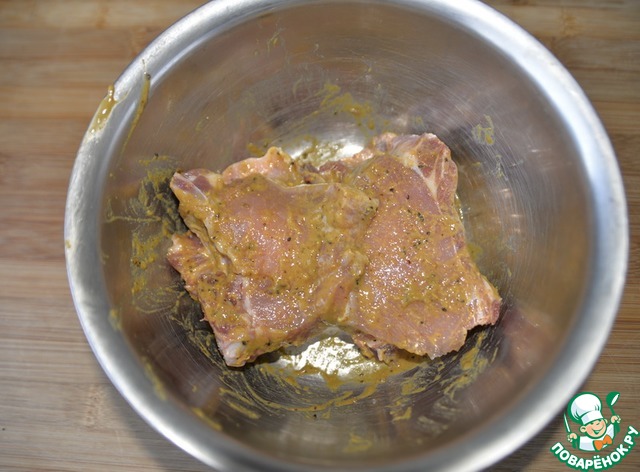 Натираем куски свинины маринадом, накрываем и оставляем мариноваться на 1 час.