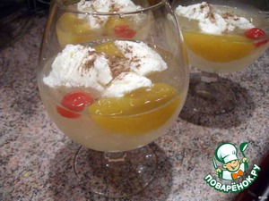 У меня: консервированные фрукты – персик, груша, коктейльные вишенки, мороженое.