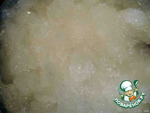 Через час нашу смесь взбиваем миксером – и обратно в морозилку еще на 1 час. В оригинале у Вас должна получиться масса, похожая на пюре или на подтаявший лед.