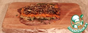 И последний слой грибы. Их кладем посередине начинки. Посыпаем солью.