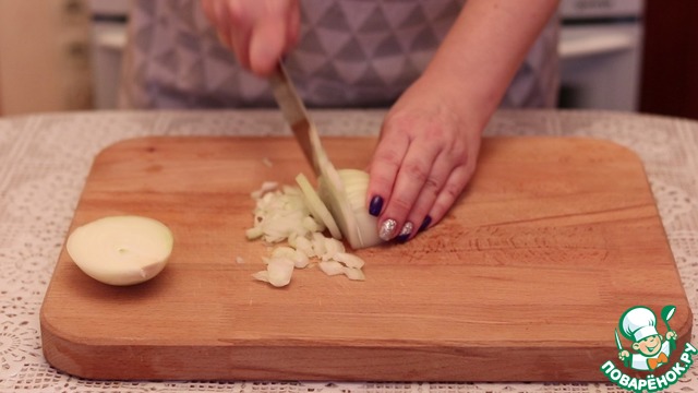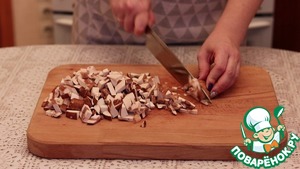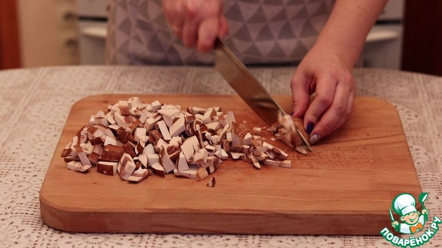 Шампиньоны чистим и нарезаем небольшими кубиками.