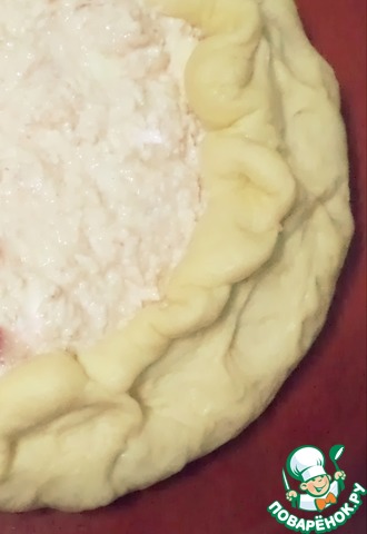 Приподнимая края сделать защипы, формируя открытый пирог. Украсьте пирог маленькими цветами из теста. -
